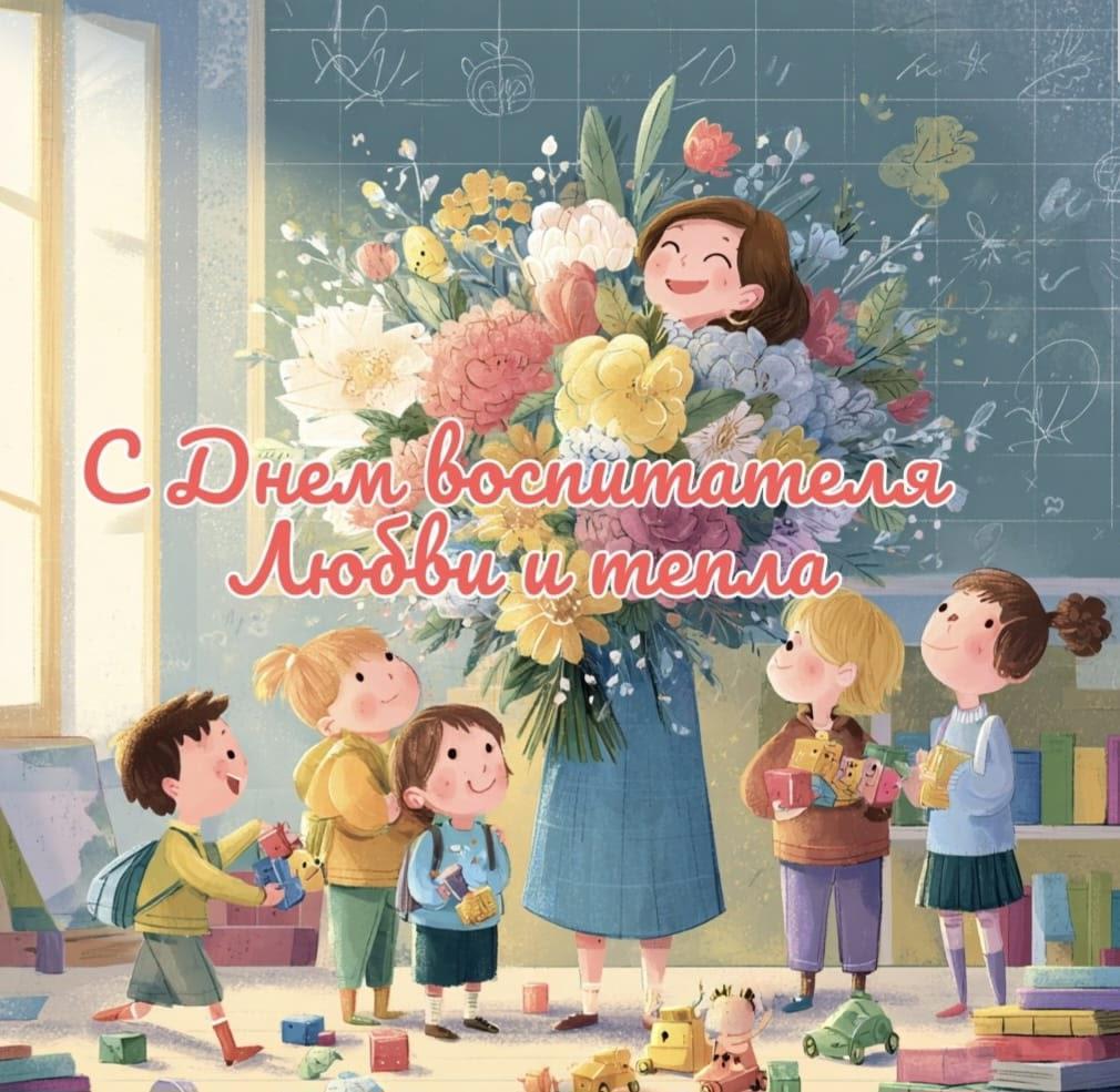 Уважаемые коллеги! Поздравляем вас с Днём воспитателя! Вместе мы создаём атмосферу тепла и заботы для наших малышей, помогаем им расти и развиваться. Желаем вам профессионального роста, вдохновения и неиссякаемой энергии. Пусть каждый день приносит удовлетворение от нашей важной и нужной работы!